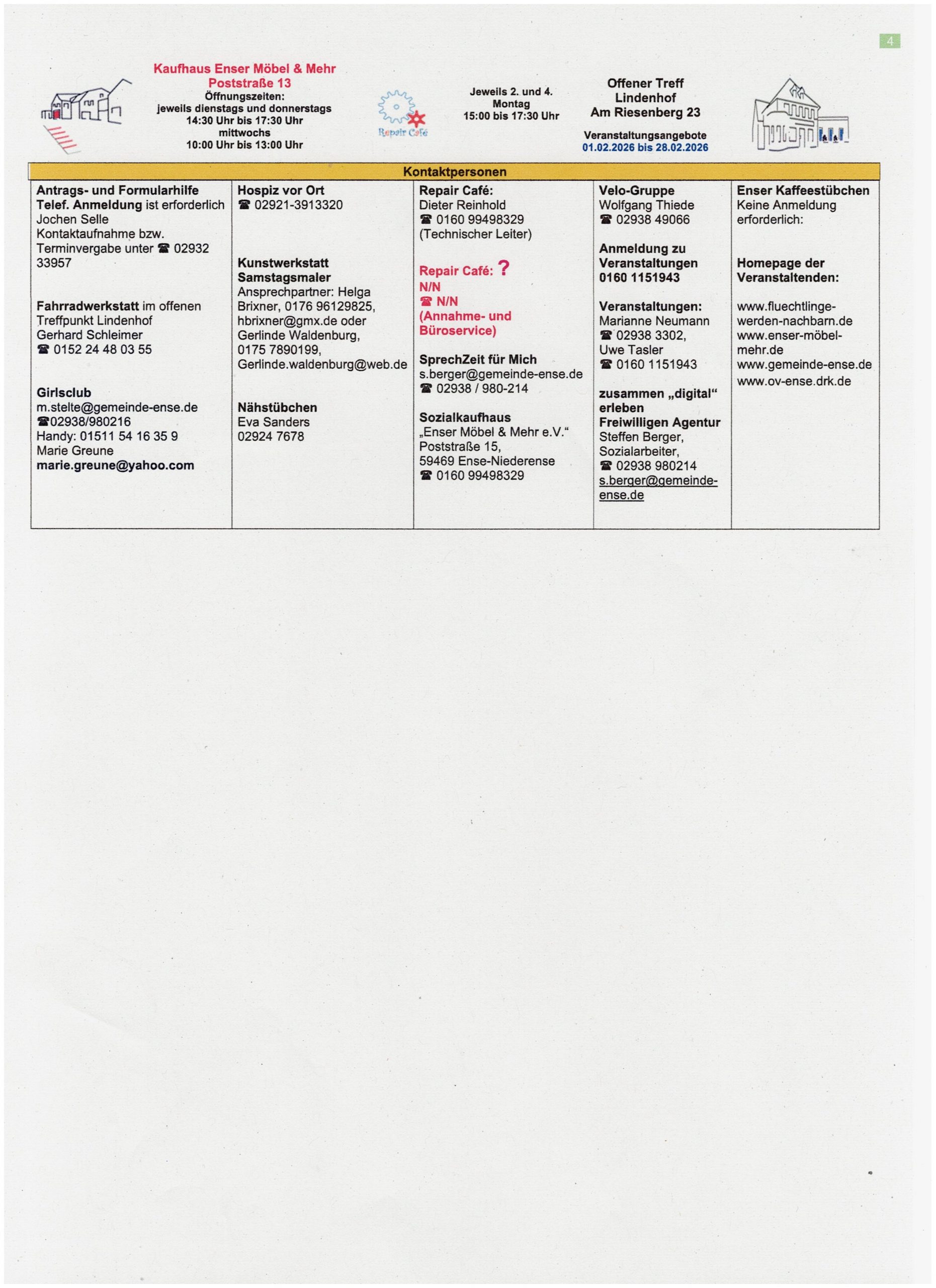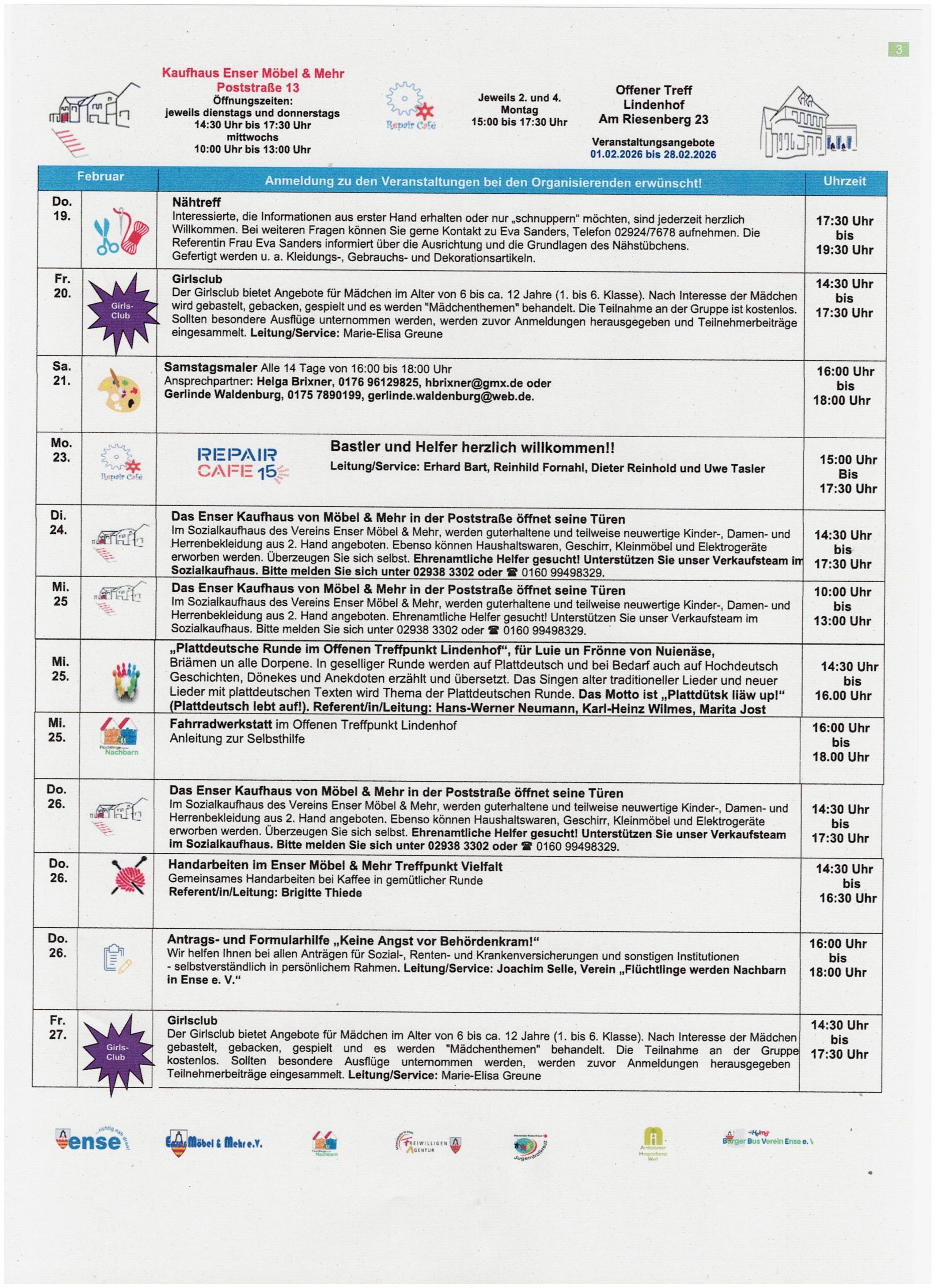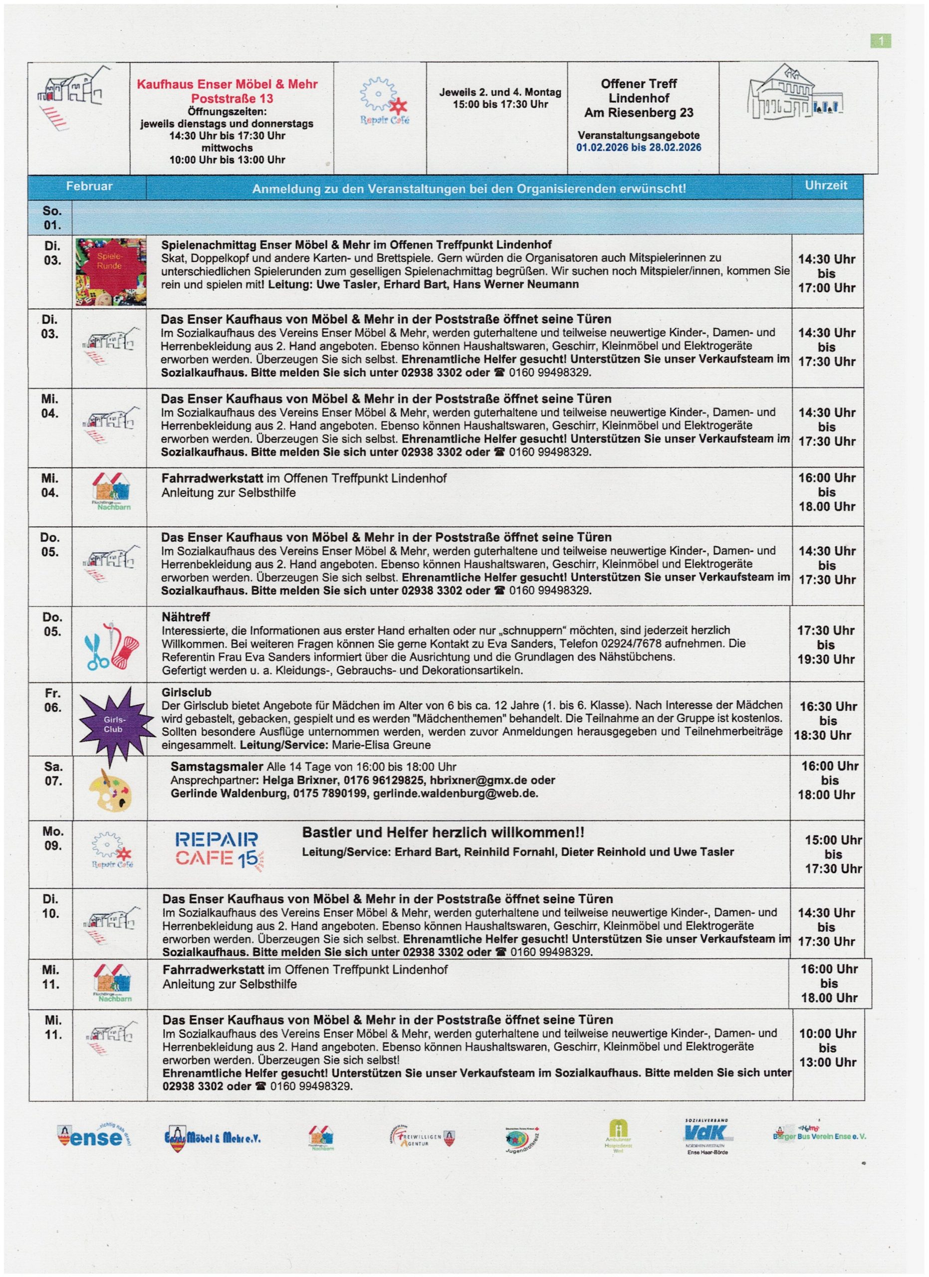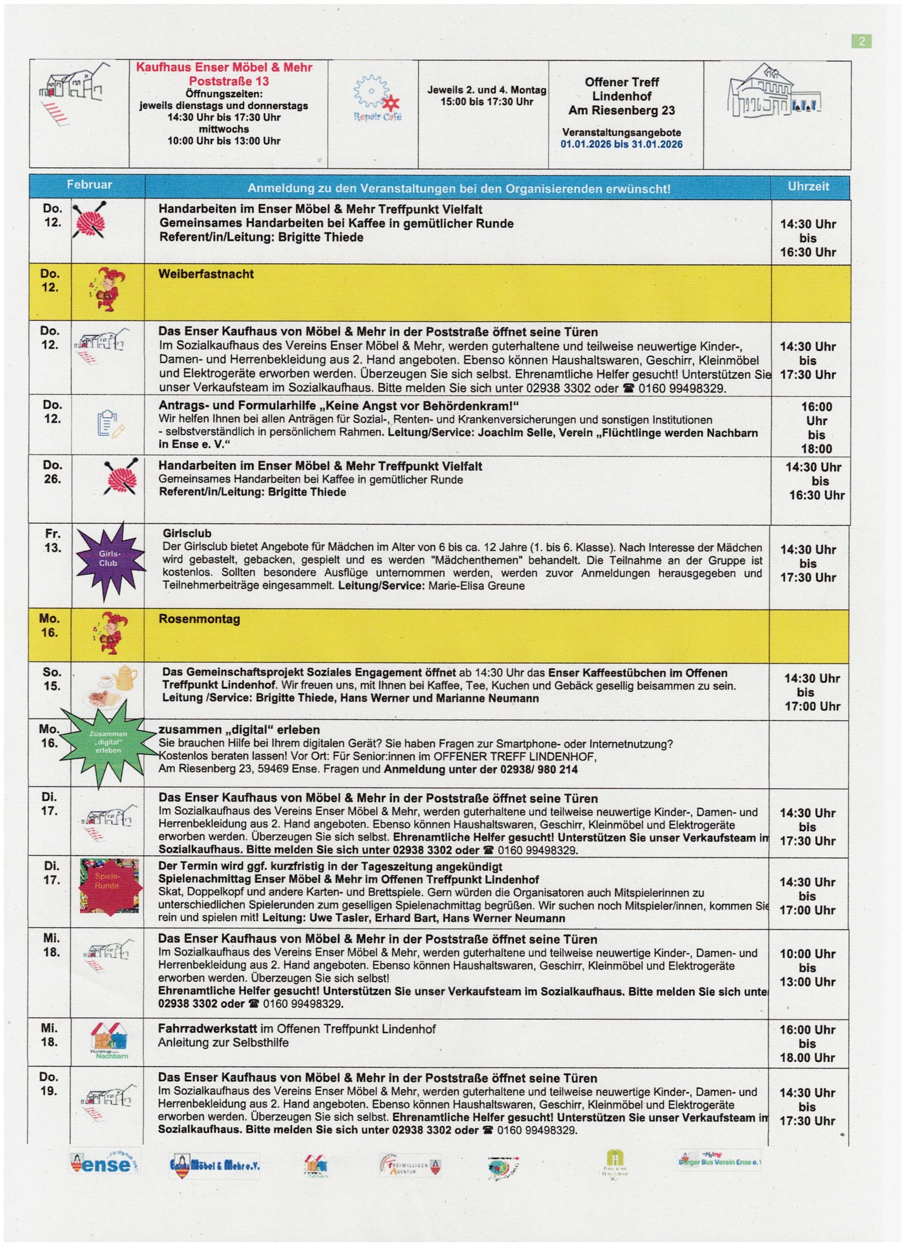 Veranstaltungskalender Februar 2026