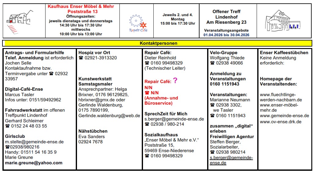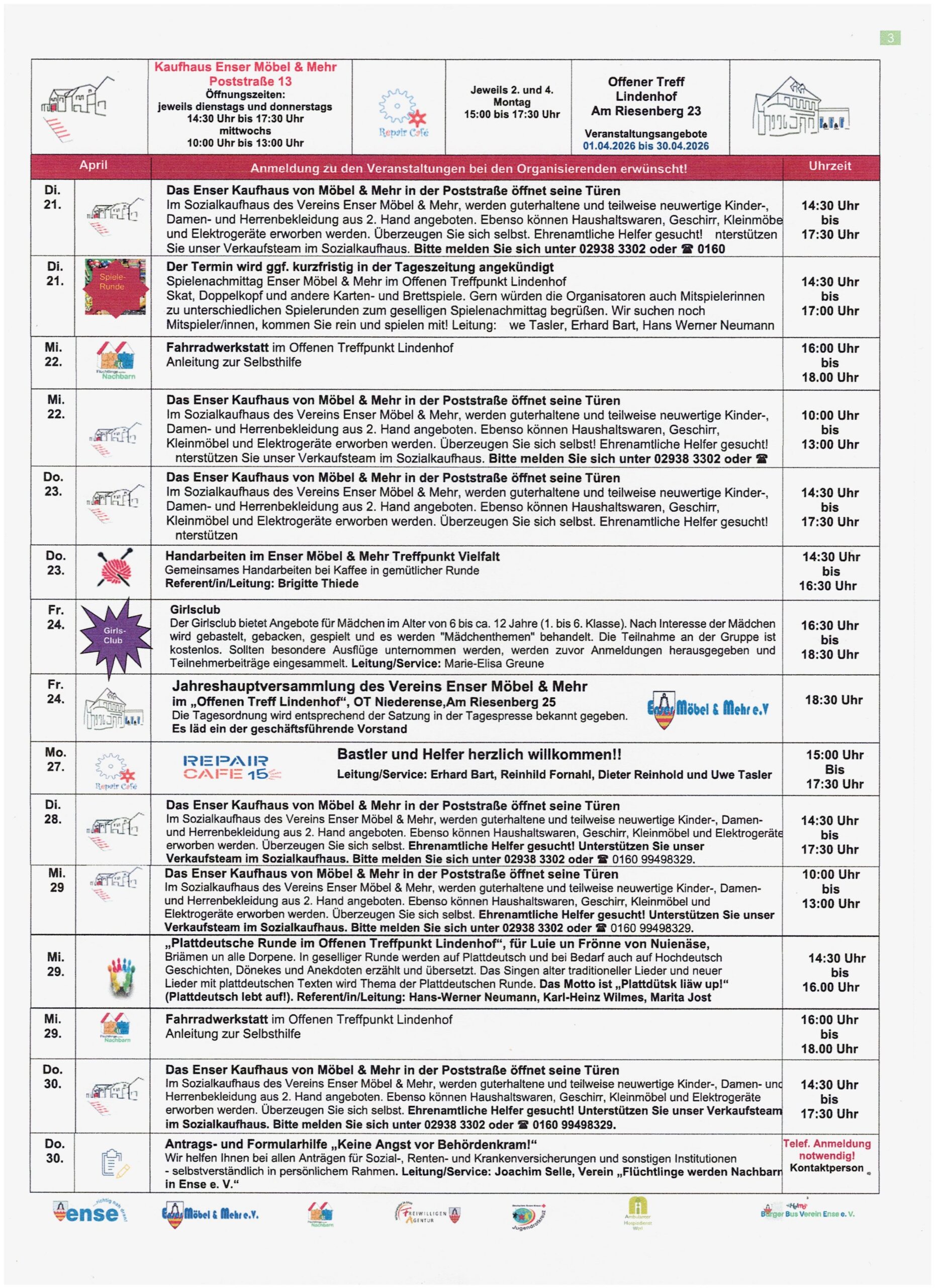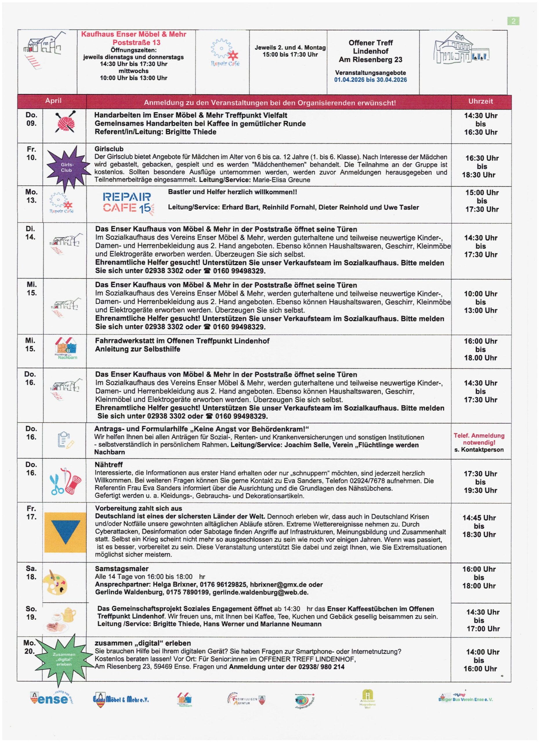 Veranstaltungskalender APRIL 2026 hier finden Sie die aktuellen Veranstaltungen zum Download und Ausdruck als PDF